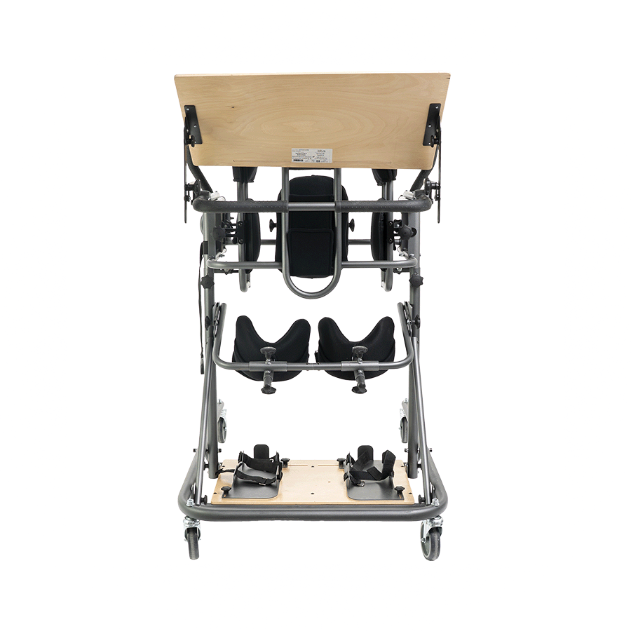 The parapodium is designed for people with orthopaedic, neurological and cardiovascular conditions, as well as for people after surgery who are unable to independently assume and maintain a standing position as a result of prolonged immobilisation. In addition to securing and supporting the user in a standing position, the device is a great help during daily activities, but also when learning and practising walking skills. Proper adjustment and fitting the device components depends on medical indications and anatomical parameters, regardless of the age of the user.